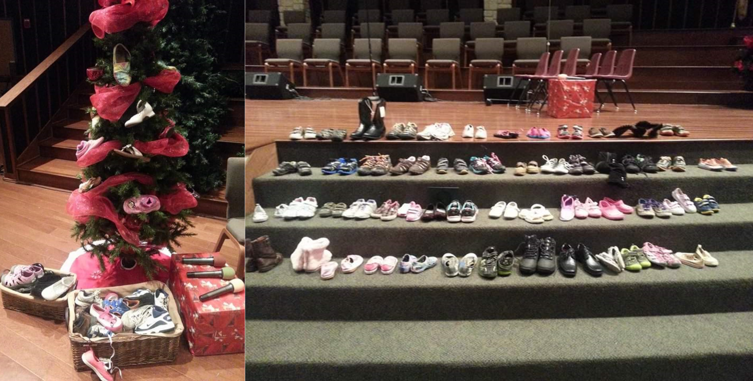Over the years our choir grew. There were some seasons where the choir numbers were in the forties or even fifties. One Sunday morning in April of 2014 we had over seventy kids singing in the choir loft! As our choir grew, so did our desire to serve more in our church and we began to add other opportunities for the kids to sing and do ministry. We sang on Palm Sundays and at times combined with the adult choir to lead worship together. We also went caroling at the nursing homes. One Christmas, we even took on a community service project alongside our musical, The Christmas Shoe Tree, collecting and donating over 60 pairs of shoes.